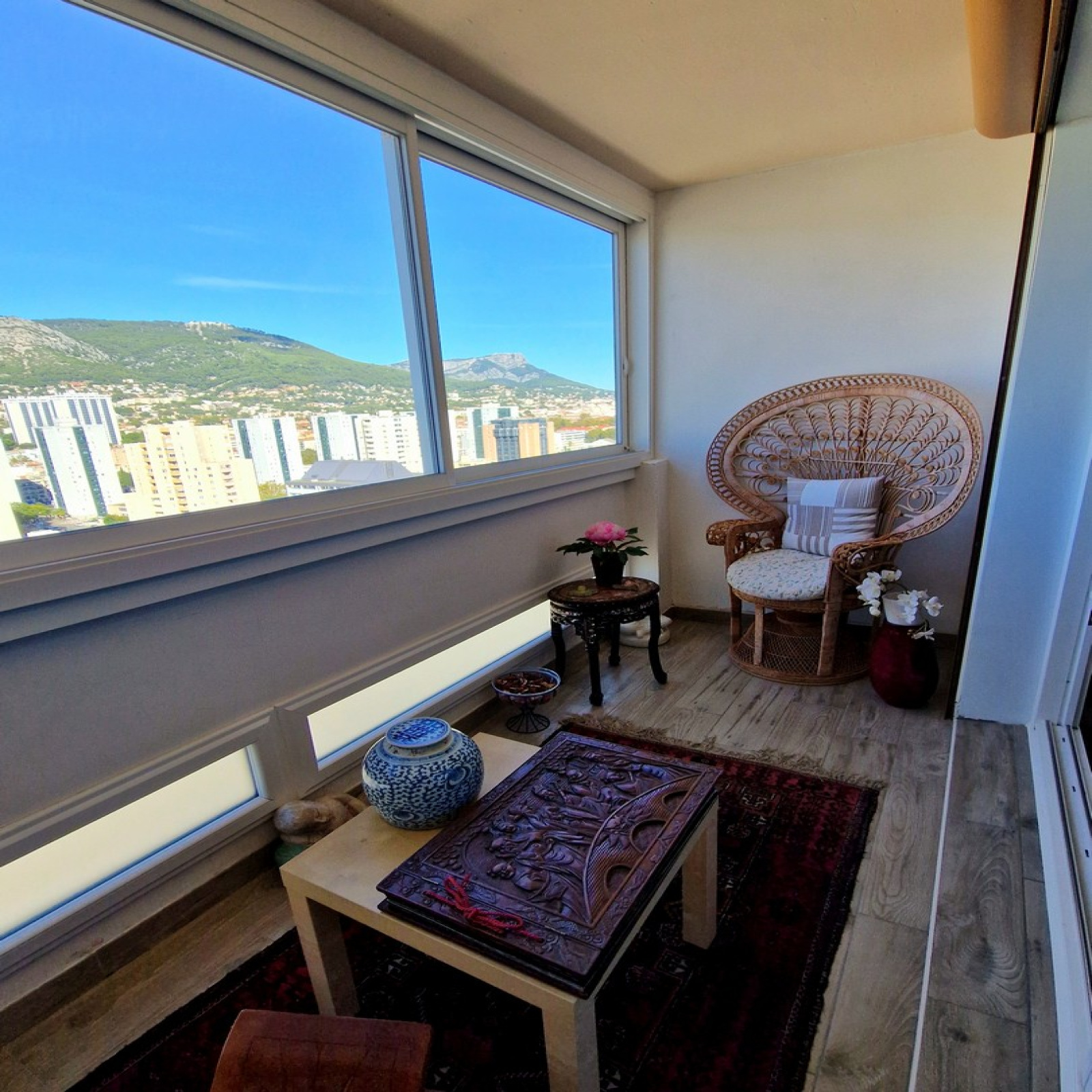 TOULON LA RODE : A la limite du Mourillon, proche de toutes commodités (écoles, commerces, transports), très bel appartement de Type 5 de 105 m² en étage élevé dans un immeuble très bien entretenu avec 2 ascenseurs, clair et ensoleillé avec des vues incroyables sur la ville, le mont Faron et le port.