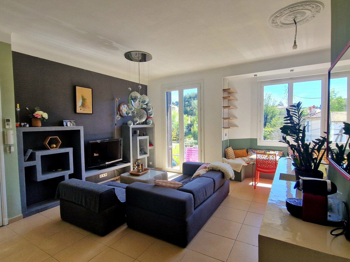 Double vitrage, climatisation réversible, belle hauteur de plafond donnant de beaux volumes.