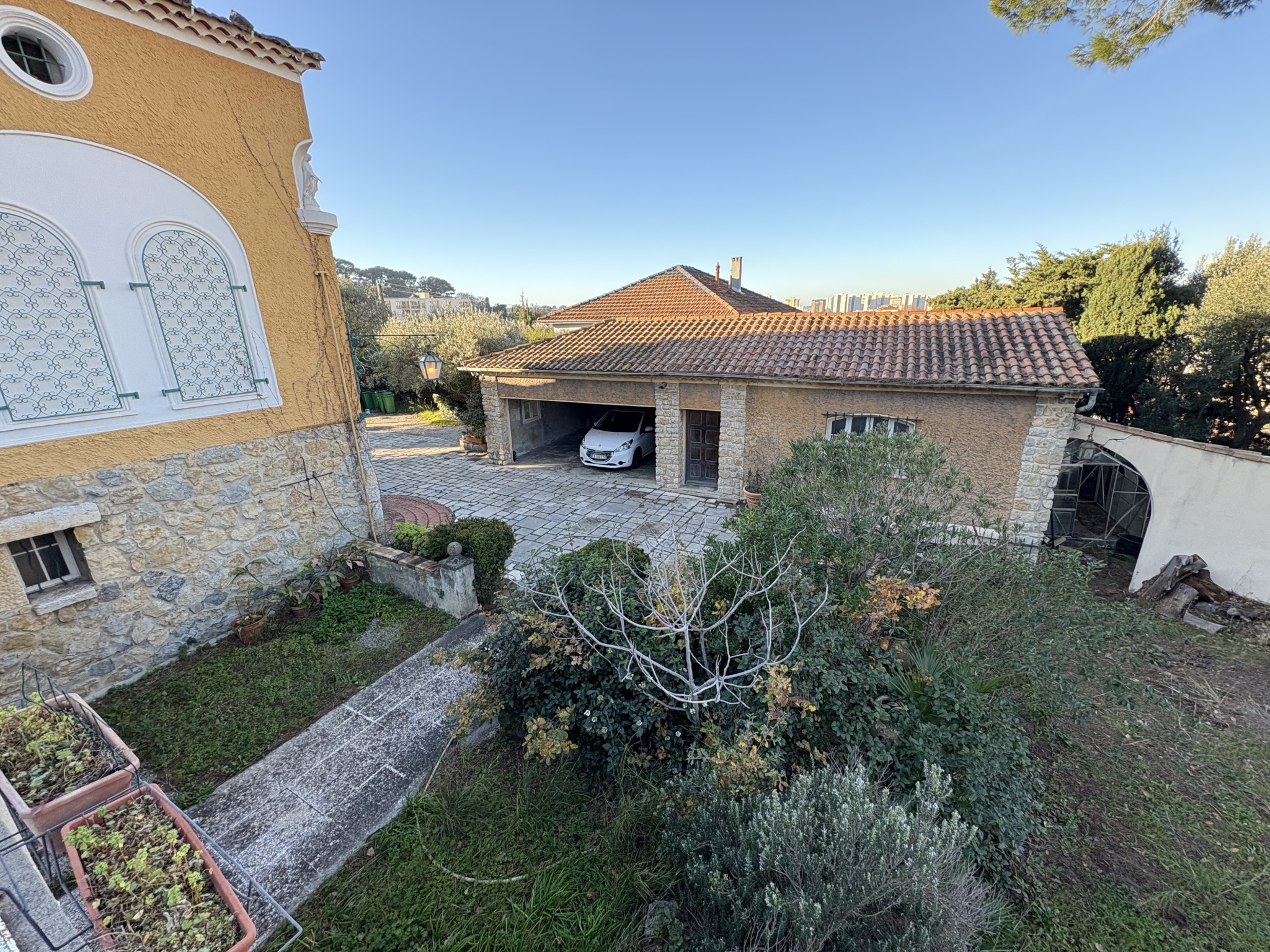 Dans le jardin vous trouverez également un studio indépendant de 30 m² et un grand abri à voiture de 28 m².